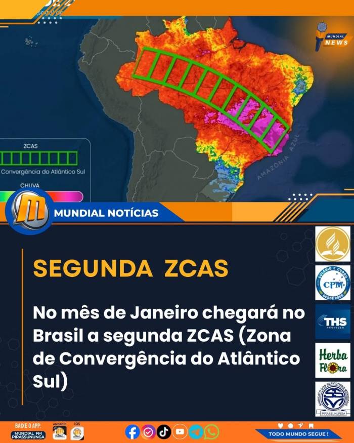 Atenção, Brasil. Entre os dias 19 e 23 de janeiro, a reorganização da Zona de Convergência do Atlântico Sul (ZCAS) deve provocar um período prolongado de instabilidade climática, com chuvas intensas, persistentes e volumes elevados em diversas regiões do país. Esta será a segunda atuação do fenômeno em 2026, exigindo atenção redobrada da população e das autoridades.
