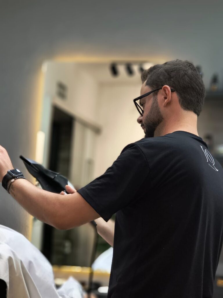 Corte de cabelo, designer de barba, designer de sobrancelha, depilação na nasal e na orelha, hidratação, luzes e platinado.