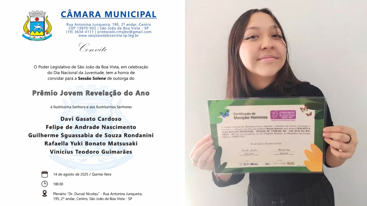Este prêmio incentiva a juventude de São João da Boa Vista a buscar a excelência acadêmica e o protagonismo social, reforçando a importância do investimento em educação de qualidade e oportunidades para todos.
