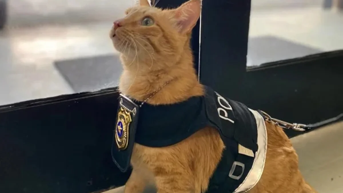O felino, sem raça definida, tem sete anos e foi resgatado pela ONG Lelo Love Pet. Desde que chegou à delegacia, há cerca de dois meses, tornou o ambiente mais leve e acolhedor — um contraste fundamental para quem enfrenta momentos de tensão emocional. Com seu olhar curioso, miado suave e uniforme improvisado, ele conquista adultos e crianças logo na entrada.