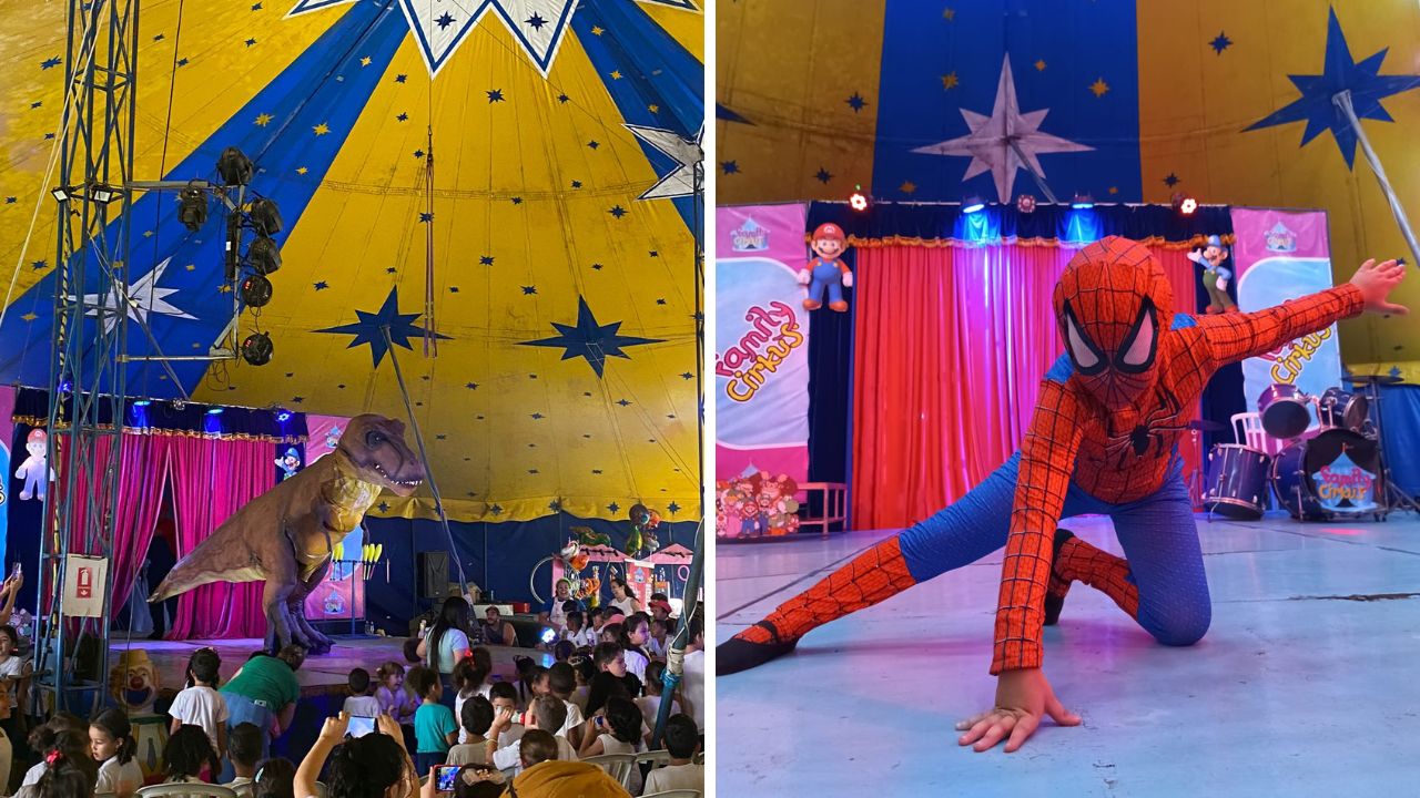 Temos atrações circenses como equilibrista, malabarista (com o menor malabarista do Brasil), palhaços, bambolês e personagens que as crianças amam: Stitch, Peppa Pig, Bolofofos. Há ainda uma linda homenagem do nosso autista artista aos seus grandes ídolos, Chaves e Michael Jackson. Além disso, os dinossauros vão invadir o palco do circo, com um T-Rex de 6 metros.