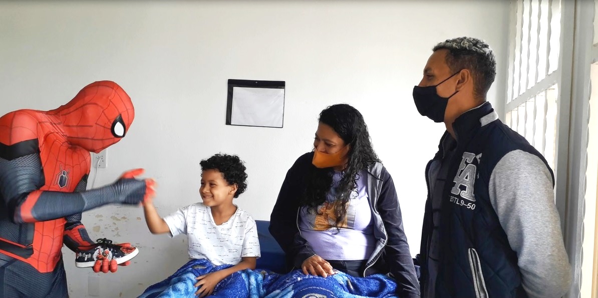 Enquanto aguardavam pela cirurgia no quarto, os meninos receberam a visita dos “Amigos do Bem”. Os personagens infantis (Homem Aranha, Batman e Feitceira Escarlate) foram convidados para amenizar a ansiedade e diminuir o medo das crianças antes da entrada ao Centro Cirúrgico.