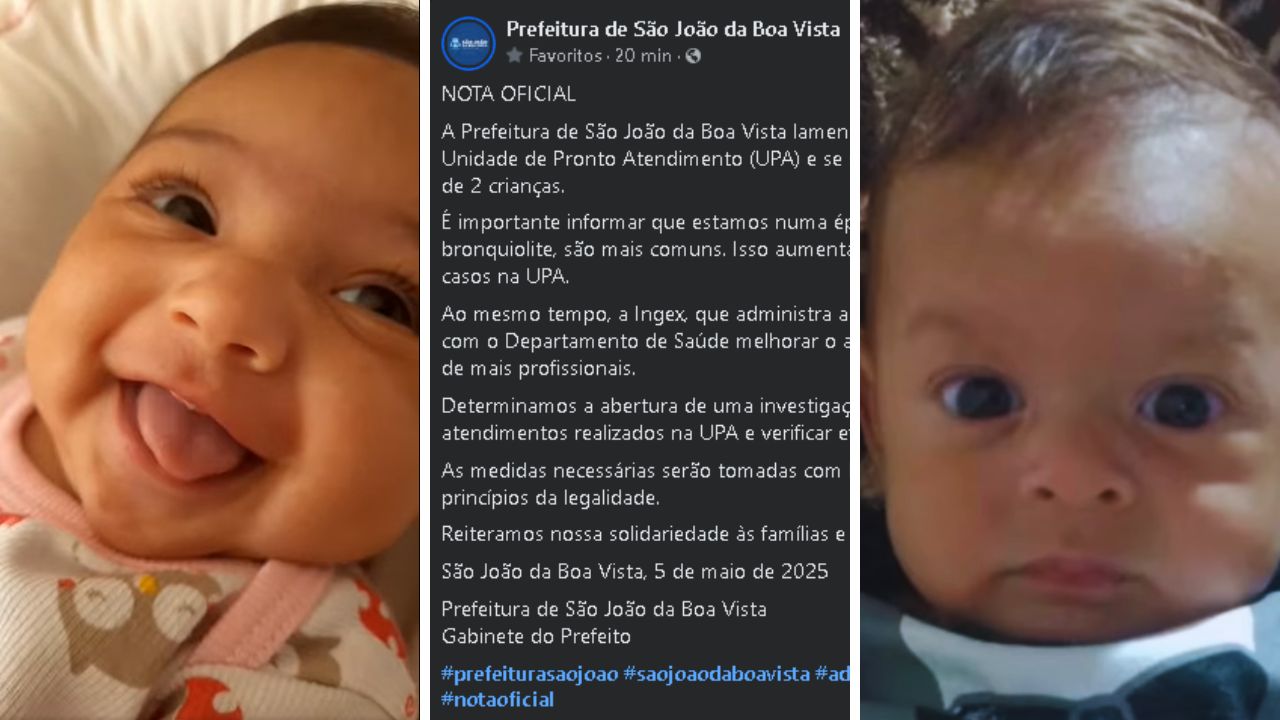 Diante da repercussão e da pressão popular, a Prefeitura divulgou nesta segunda-feira (5) uma nota oficial, lamentando profundamente os acontecimentos e informando a abertura de uma investigação para apurar as circunstâncias dos atendimentos prestados às duas crianças.