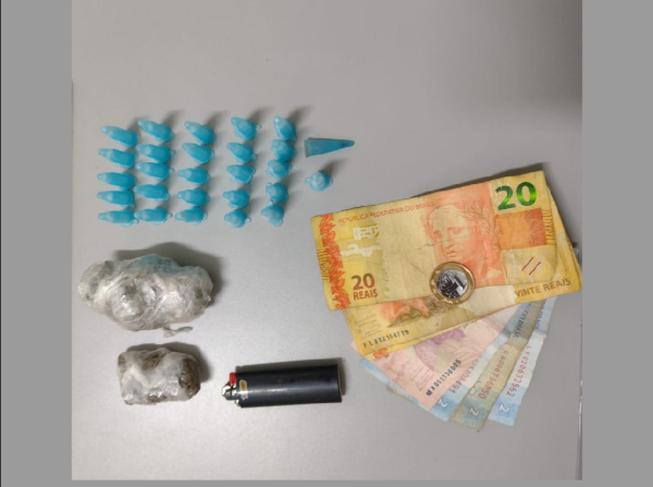 O adolescente foi alcançado e identificado — ele já era conhecido nos meios policiais e possuía um mandado de busca e apreensão ativo. Com ele, foram encontrados R$ 81,00 em dinheiro. Após refazer o trajeto da fuga, os policiais localizaram a sacola dispensada, que continha 26 eppendorfs de cocaína e duas porções de maconha, confirmando a prática do tráfico de drogas.
