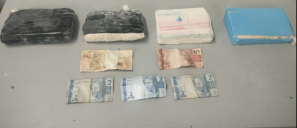 O suspeito alegou que a droga encontrada seria para uso próprio, mas indicou que havia mais entorpecentes em sua residência. No quarto indicado, os policiais localizaram quatro tabletes de cocaína base, totalizando 3,824 kg, escondidos sobre a cama entre roupas. Ele afirmou que guardava a droga para seu sobrinho, atualmente detido em outra unidade.
