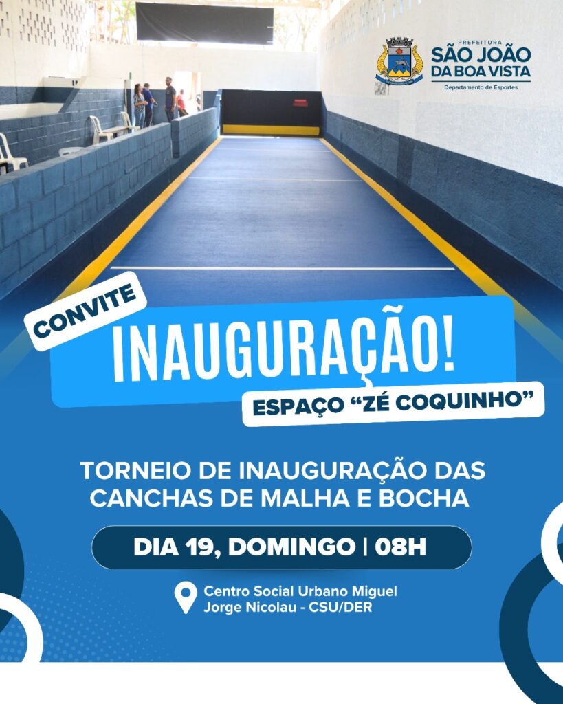 São João da Boa Vista, 13 de outubro de 2025 – A Prefeitura de São João da Boa Vista, por meio do Departamento de Esportes, inaugura oficialmente no próximo domingo, dia 19 de outubro, o novo Espaço Esportivo “Zé Coquinho”, localizado no Centro Social Urbano – Miguel Jorge Nicolau (CSU/DER).