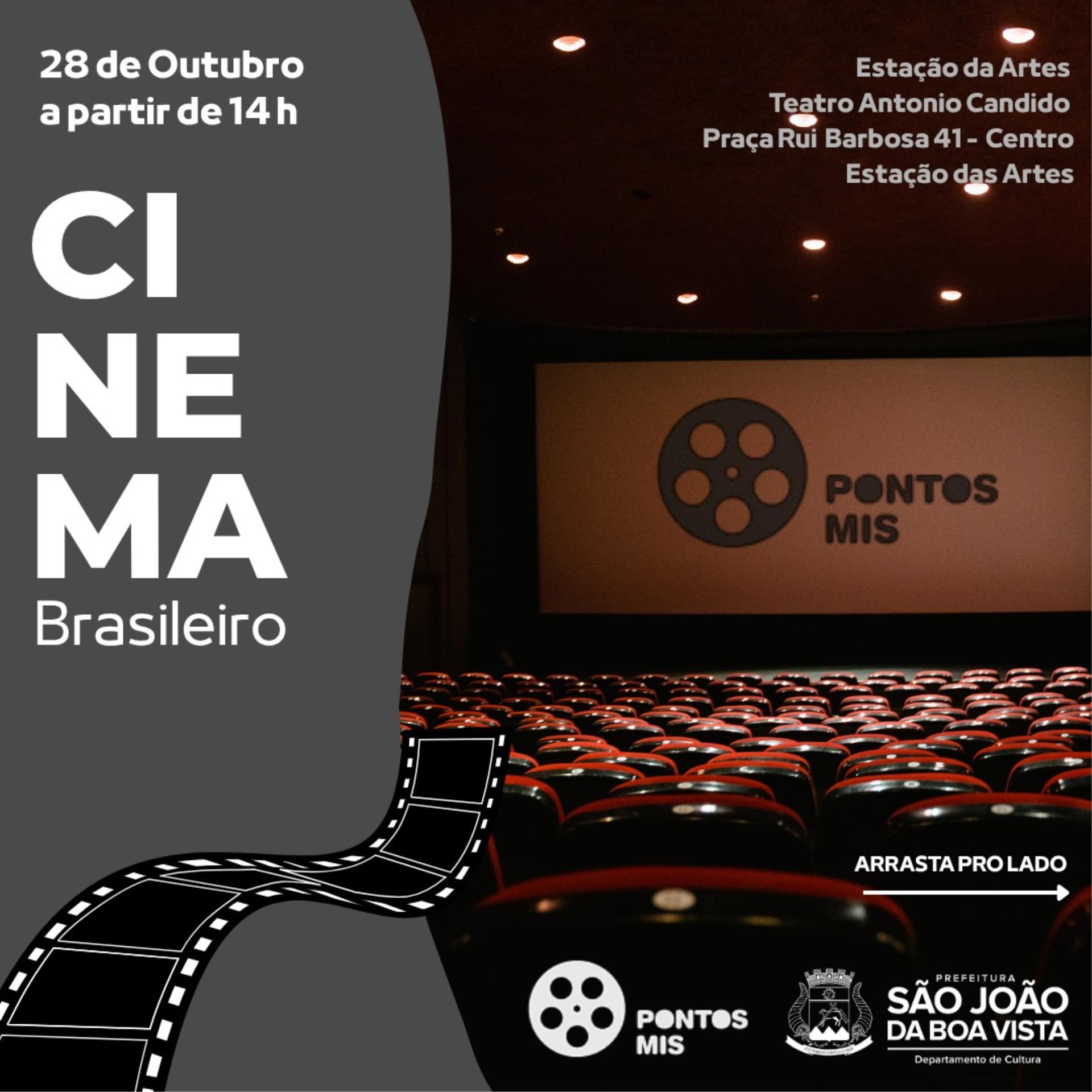 A Prefeitura de São João da Boa Vista, por meio do Departamento de Cultura, realiza quatro sessões gratuitas de Cinema Brasileiro no Teatro Prof. Antônio Cândido, localizado na Estação das Artes (Rua São João, 41 A), nos dias 28 e 30 de outubro.