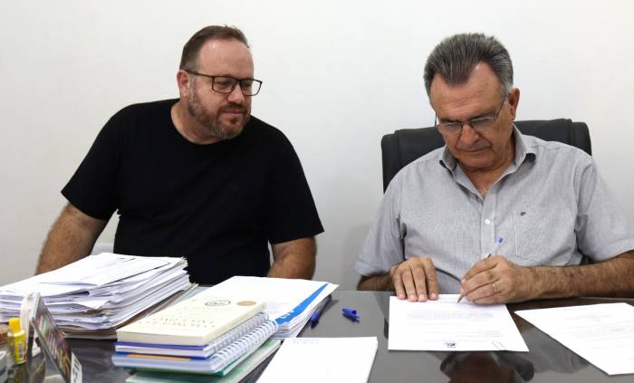 📸 Foto: Prefeito Vanderlei Borges de Carvalho assina ofício à VLI, acompanhado pelo diretor de Turismo, Marcelo Alexandre Correia da Silva.