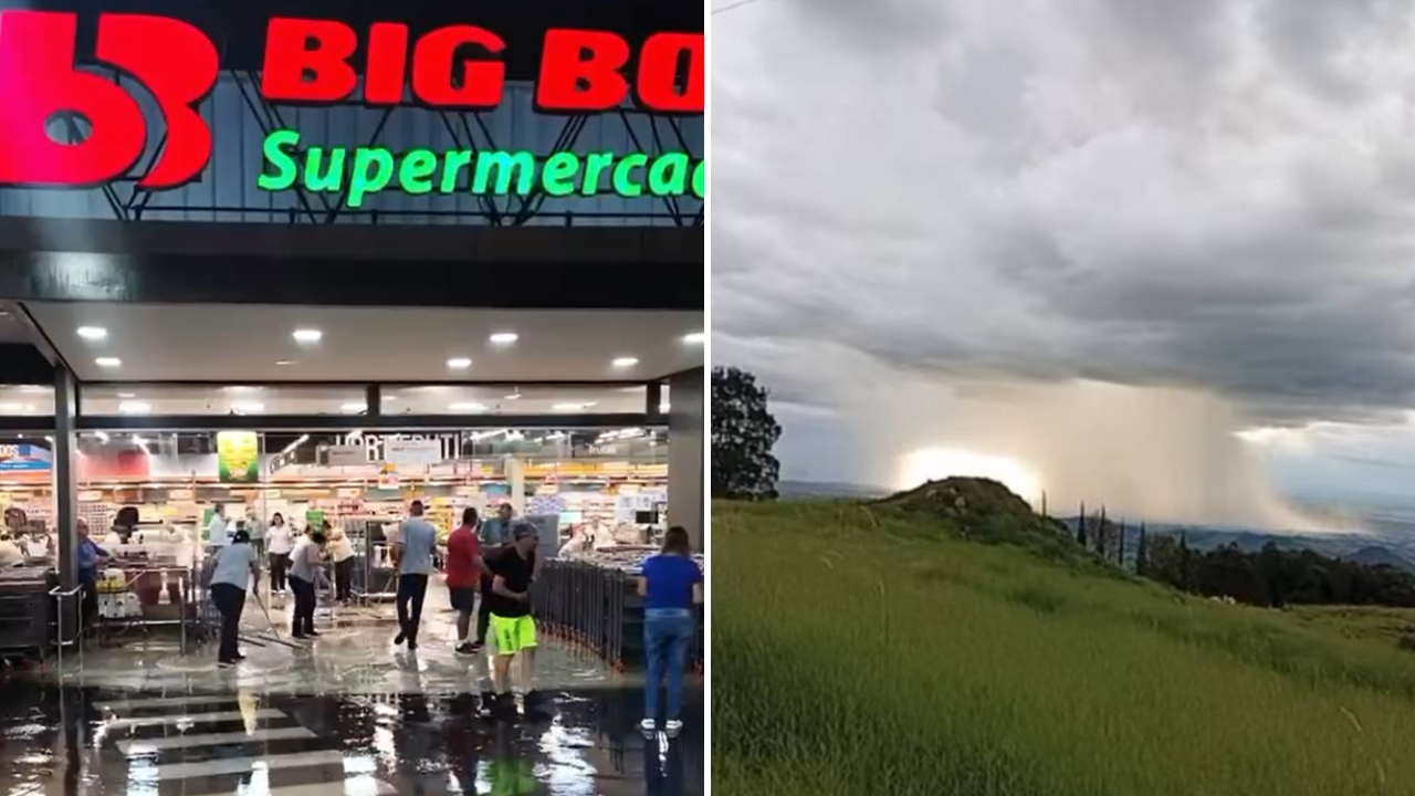 Ainda no supermercado, parte da cobertura do telhado não resistiu à força da chuva e acabou se rompendo. Com isso, um grande volume de água invadiu o interior do estabelecimento, atingindo a área de laticínios e causando prejuízos materiais. Não houve registro oficial de feridos até o momento.